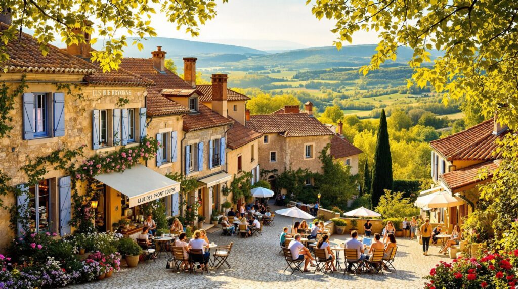 Les terrasses de Gordes offrent des vues imprenables sur la vallée du Lubéron, où champs d’oliviers et vignes s’étendent à perte de vue. Ce cadre idyllique, digne de cartes postales, fascine les visiteurs et experts, renforçant l’attrait irrésistible de ce joyau provençal.