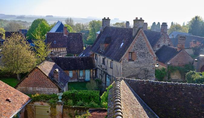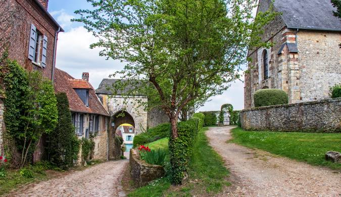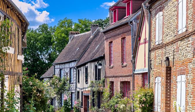 Les façades à colombages et les hourdis de briques racontent l’histoire tumultueuse de ce village, théâtre de nombreux conflits entre les royaumes de France et d’Angleterre.