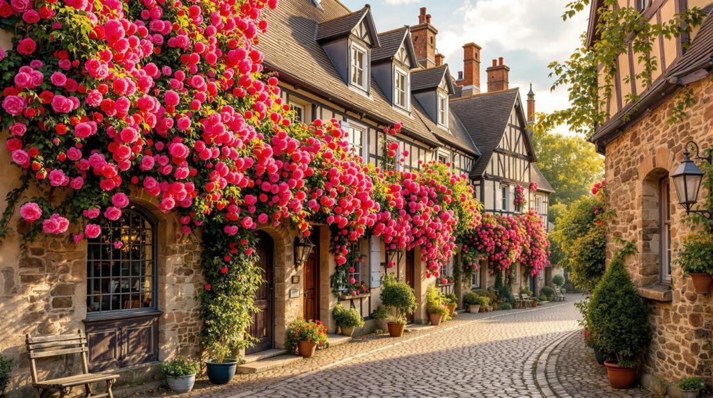 Ce village pittoresque, avec ses façades à colombages et son riche passé historique, a été le théâtre de nombreux événements marquants, attirant aujourd’hui les amateurs d’histoire et de beauté architecturale.