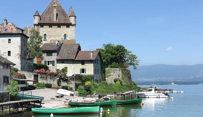 L’accès au village d’Yvoire par les navettes Belle Époque de la CGN est une expérience inoubliable. En approchant par le lac Léman, le château médiéval se dévoile progressivement, offrant une vue à couper le souffle.
