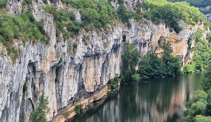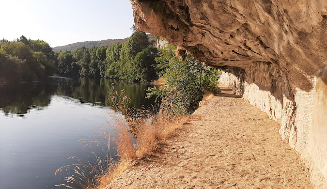 Le chemin de halage entre Bouziès et le village est une promenade accessible à tous, parsemée de sculptures taillées dans la roche, offrant une vue imprenable sur le paysage environnant.