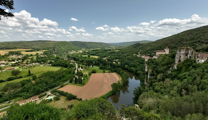 Saint-Cirq-Lapopie offre des panoramas à couper le souffle depuis ses anciennes fortifications, où les visiteurs peuvent admirer les falaises calcaires et les méandres du Lot.