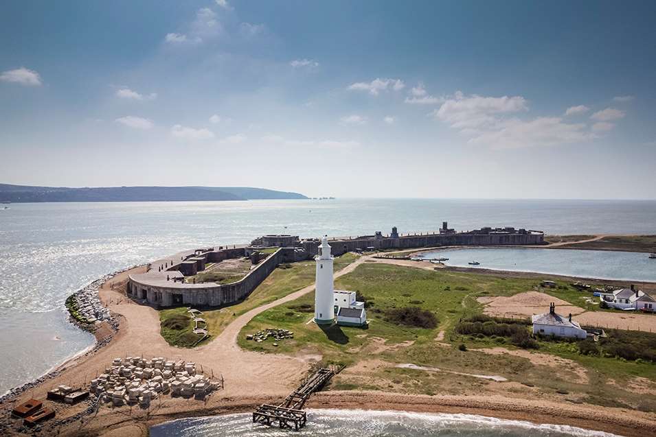En Angleterre, le château de Hurst est consolidé grâce à l’ajout de milliers de tonnes de galets et à une surveillance numérique continue.