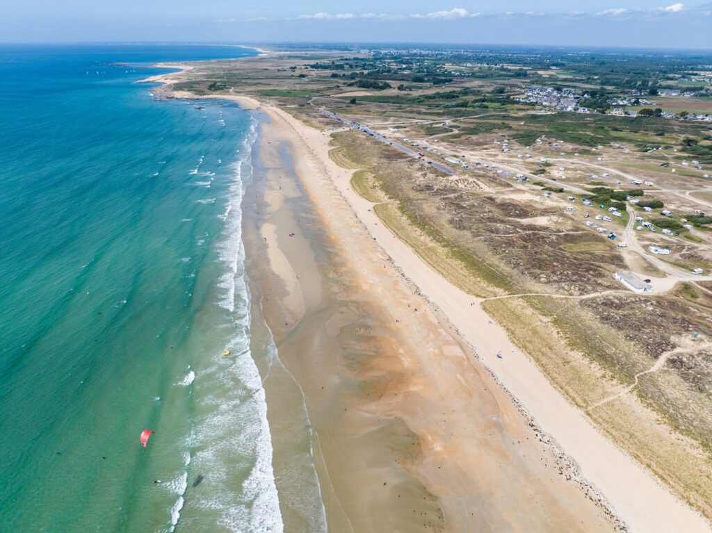 Les 8 km de plages sauvages d’Erdeven, notamment la plage de Kerminihy, offrent un cadre naturel préservé et un panorama côtier spectaculaire.