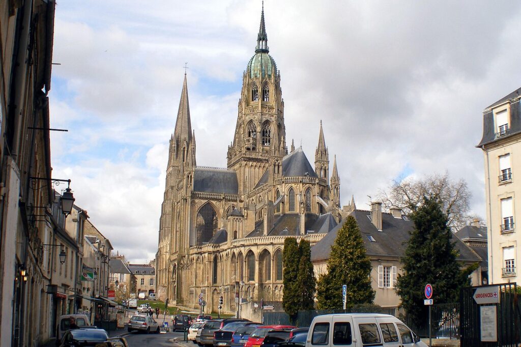Bayeux abrite des trésors historiques inestimables, à commencer par la célèbre Tapisserie de Bayeux. Conservée au Centre Guillaume-le-Conquérant, cette broderie du XIe siècle, inscrite au registre Mémoire du monde de l’UNESCO, raconte la conquête de l’Angleterre avec une précision remarquable. À travers ses 70 mètres de long, elle offre un aperçu fascinant de la vie médiévale.