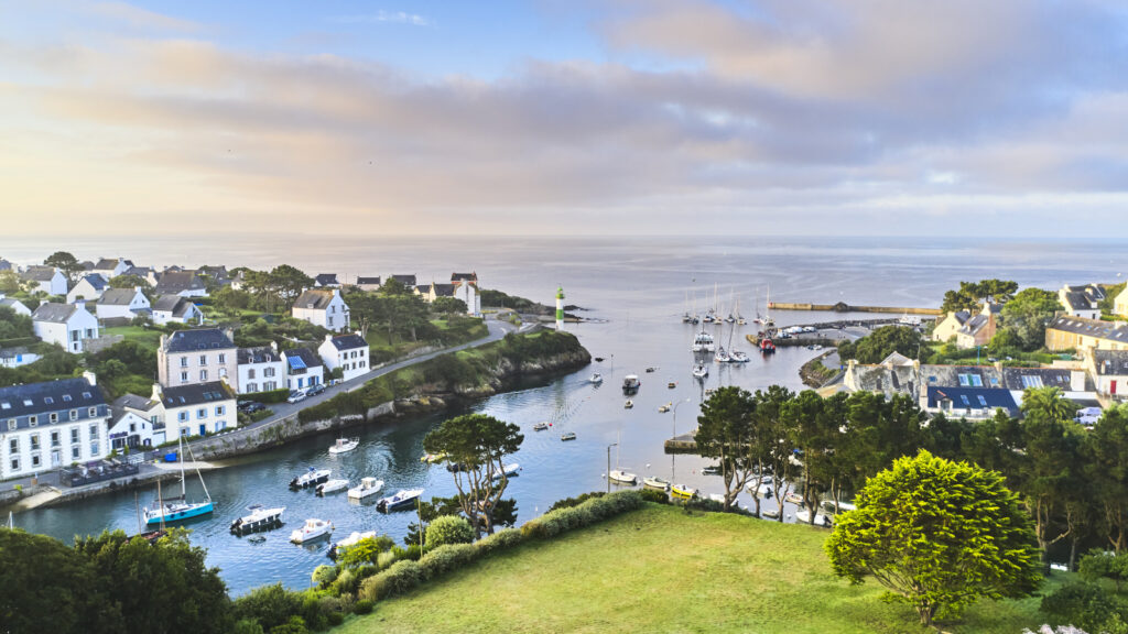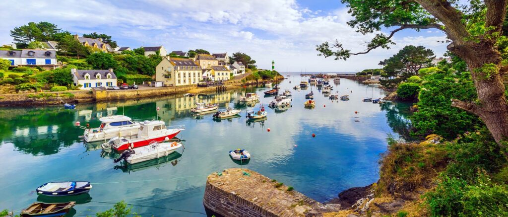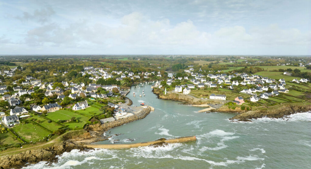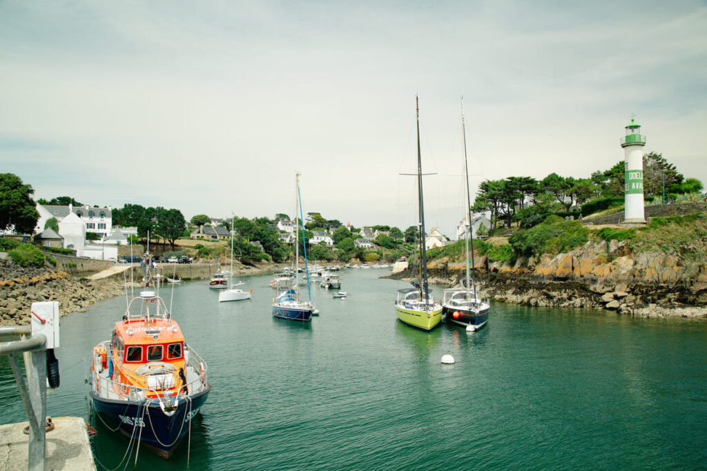 Situé dans le sud du Finistère, à proximité de Quimperlé, Doëlan est un village breton qui séduit par son charme pittoresque. Niché au fond d’une ria étroite, ce port est gardé par deux phares emblématiques, l’un vert et l’autre rouge, qui veillent sur les maisons blanches alignées le long de la côte.