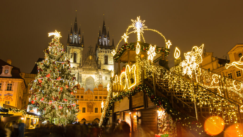 La ville se pare de mille lumières, transformant ses ponts et monuments en un spectacle féérique. L’architecture gothique de Prague, magnifiée par les illuminations, plonge les visiteurs dans un univers enchanteur, digne d’un conte de fées hivernal.