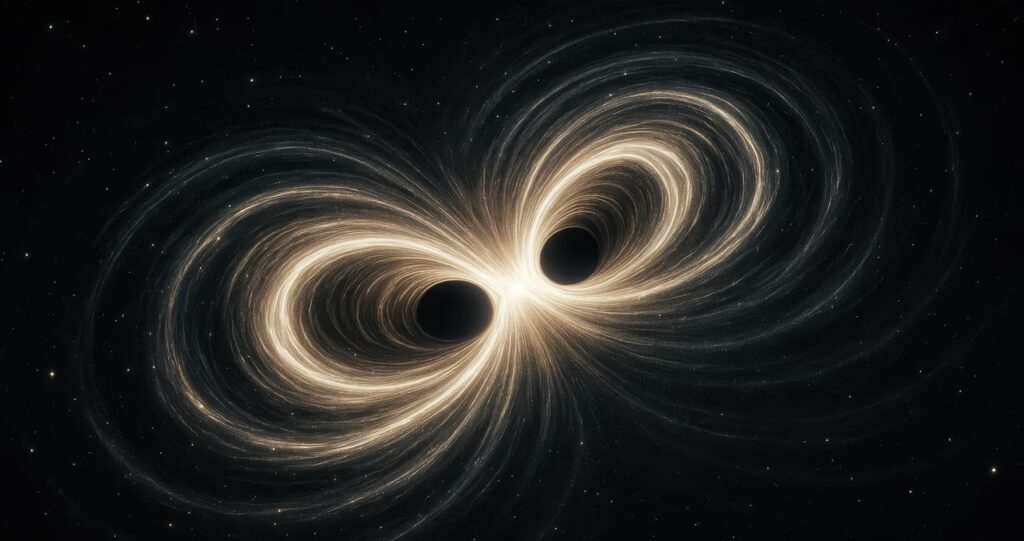 Deux trous noirs se sont fusionnés dans une explosion d’espace-temps déformé.