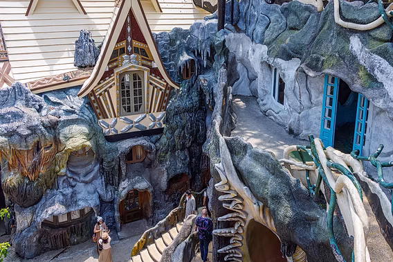 Cette œuvre vivante, en constante évolution, attire chaque jour des centaines de visiteurs curieux de découvrir son exploration du surréalisme.