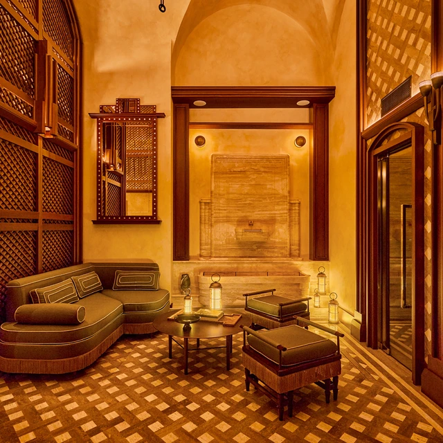 Les fontaines murmurantes et les moucharabiehs contemporains filtrent la lumière, évoquant les hammams ottomans. L’architecte Hugo Toro a su créer un espace où chaque détail, du chêne teinté aux enduits à la romaine, contribue à une ambiance raffinée et immersive.