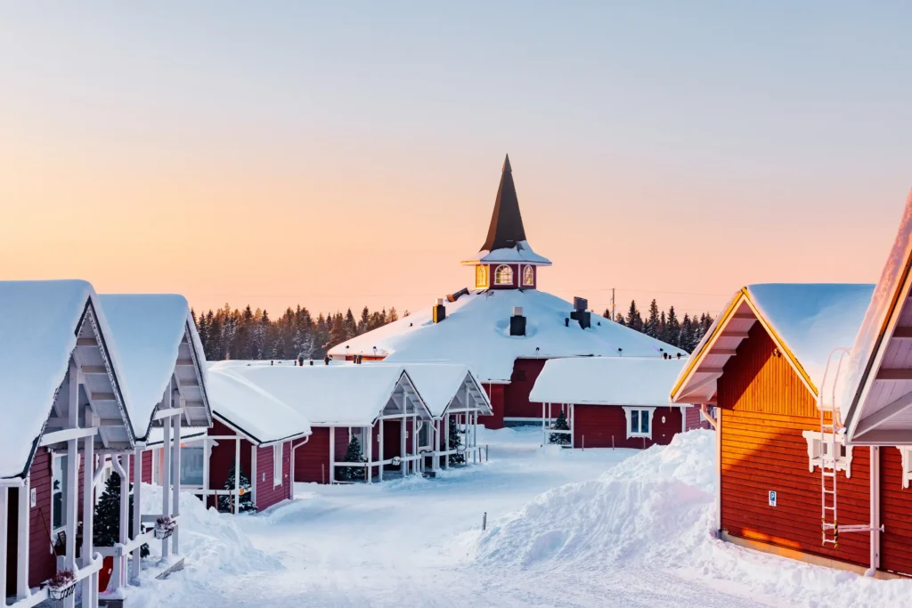 À seulement huit kilomètres du centre-ville, le village du Père Noël attire les visiteurs avec ses chalets en bois décorés et ses nombreuses activités.