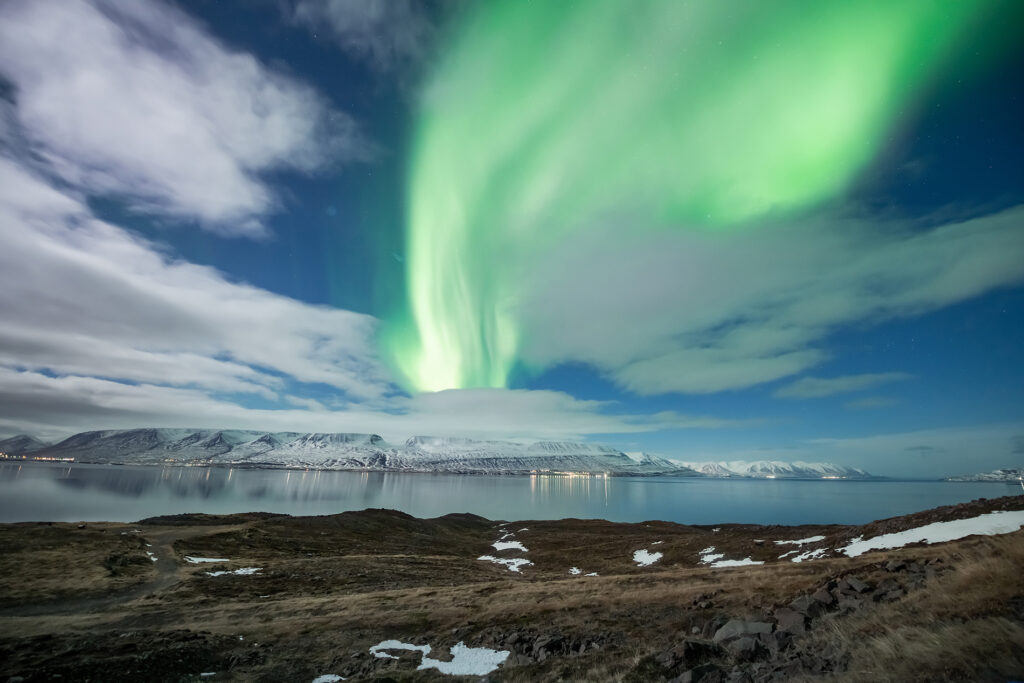 En Islande, les aurores boréales illuminent le ciel de voiles colorés, créant une ambiance magique et surnaturelle.