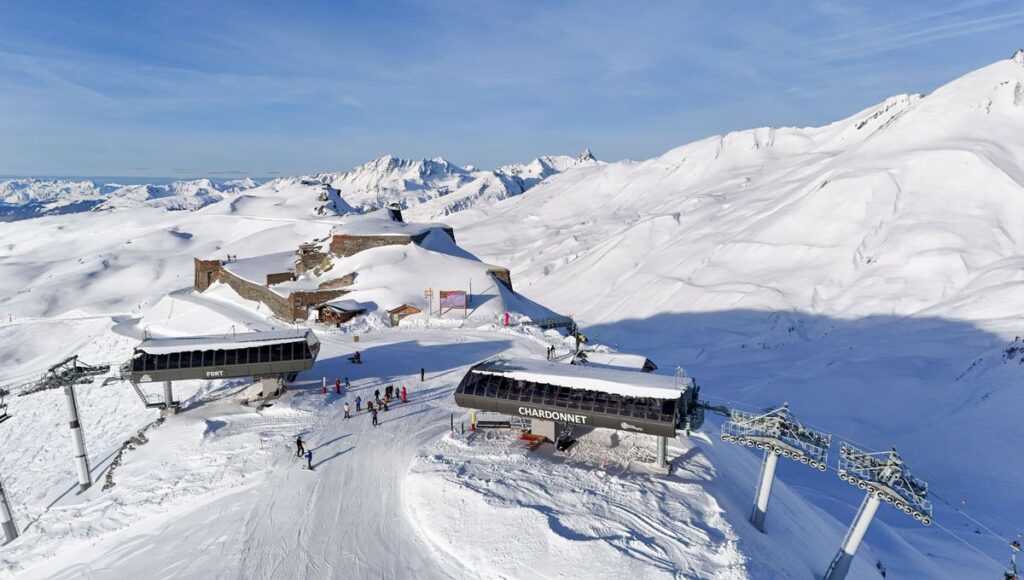 Les skieurs peuvent traverser le col du Petit Saint-Bernard, un passage historique, et profiter d’un domaine skiable baigné de lumière.