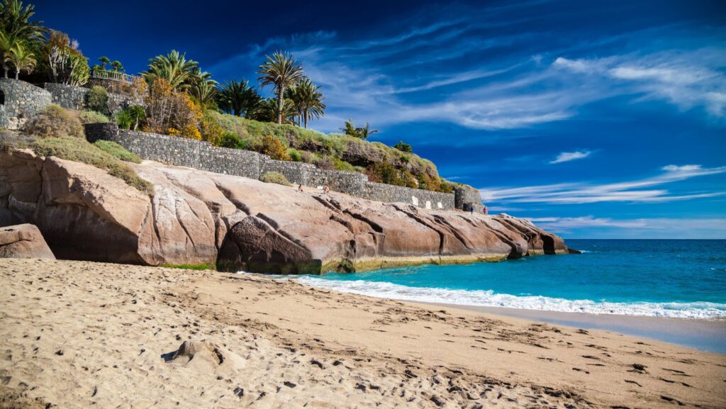 Nichée sur la Costa Adeje, au sud de Tenerife, la Playa del Duque s’étend le long d’une baie abritée des vents.