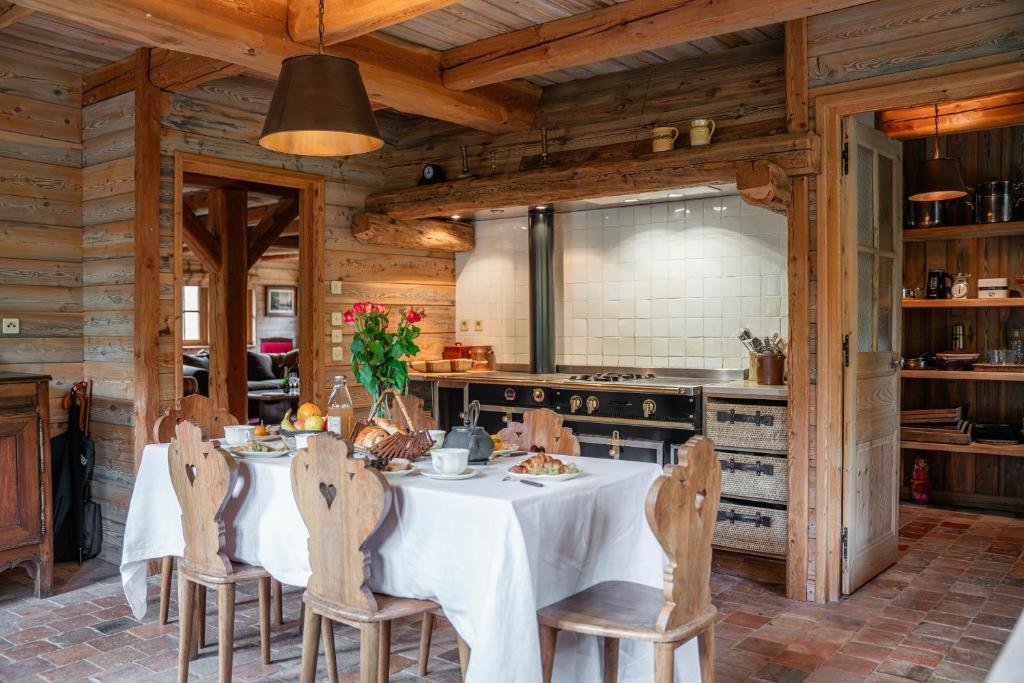 Philippe Gauthier, l’architecte visionnaire, a choisi le bois de mélèze pour sa résistance et ses tons orangés, s’inspirant des vieilles maisons de village d’altitude. Ce choix audacieux confère au chalet un charme indéniable.