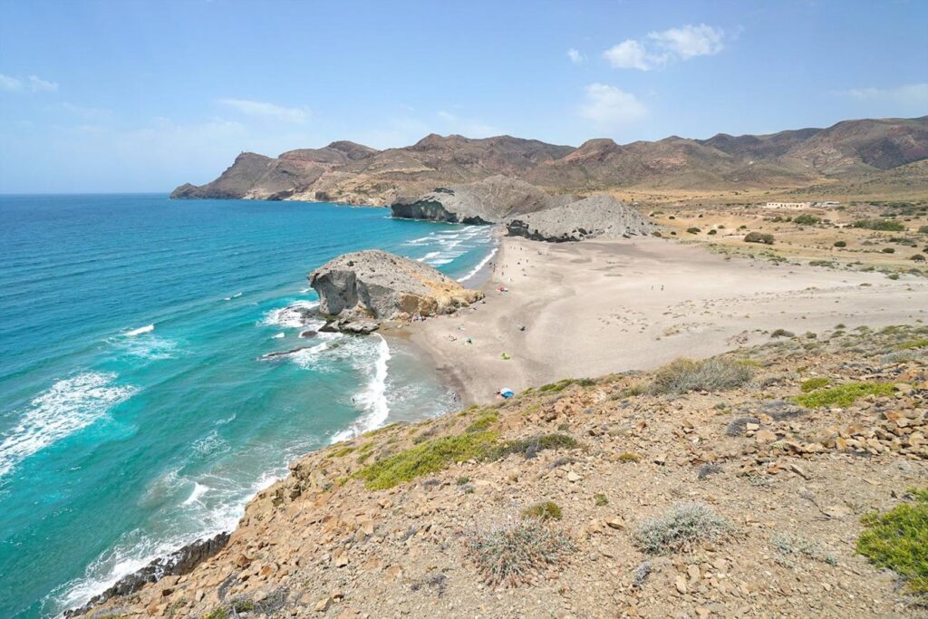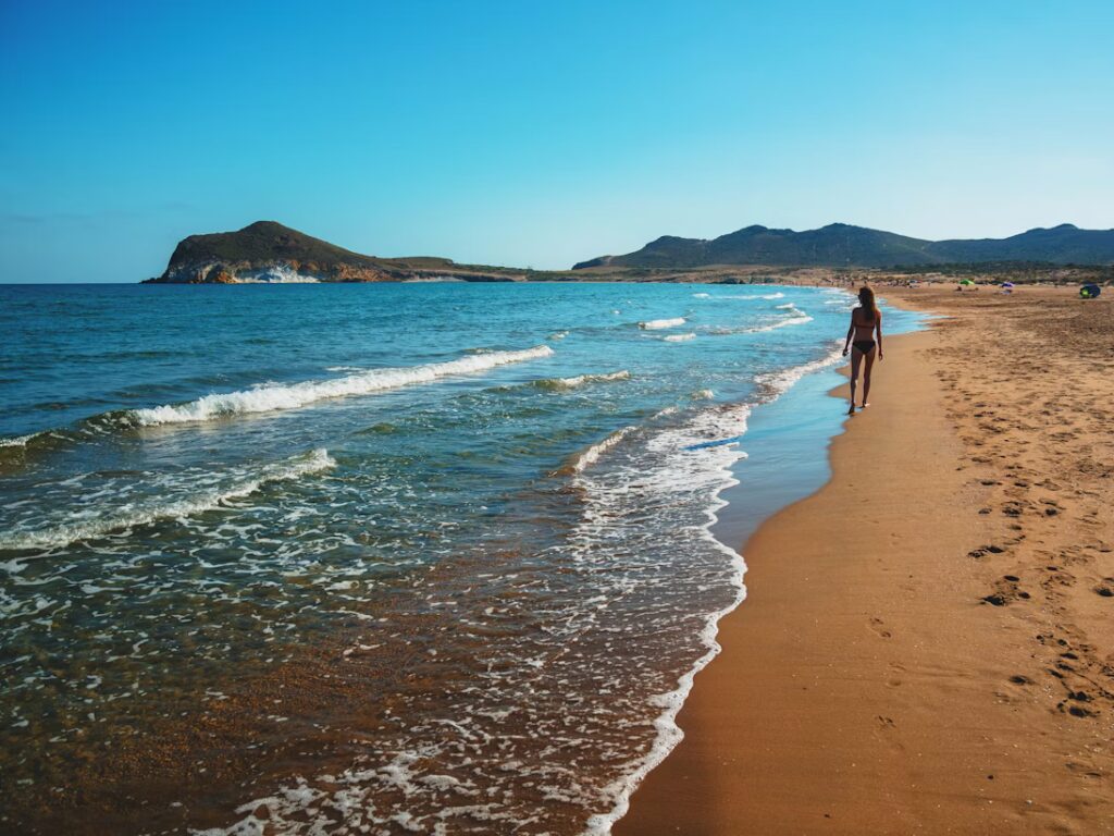 Nichée dans le Parc naturel de Cabo de Gata-Níjar, cette plage andalouse offre un spectacle naturel époustouflant. Loin des constructions urbaines, elle dévoile des paysages bruts et authentiques, où la Méditerranée se montre dans sa splendeur originelle. Ce coin de paradis, préservé de l’urbanisation massive, attire les voyageurs en quête de tranquillité et de beauté sauvage.
