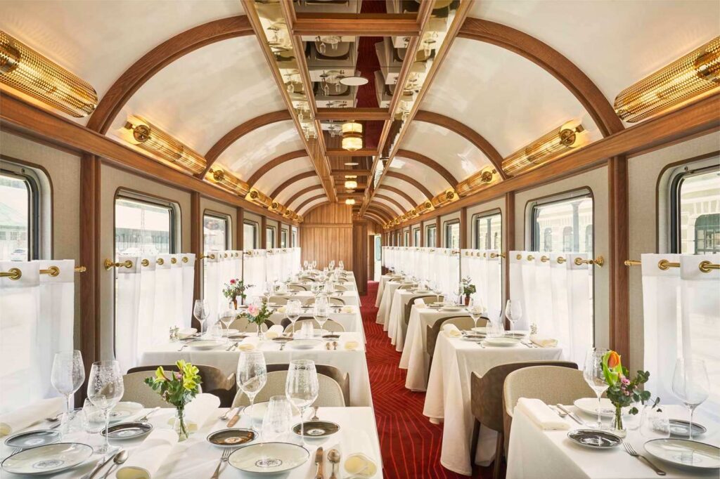 Au cœur de la Canfranc Estación, le Canfranc Express offre une expérience gastronomique inoubliable. Ce wagon d’époque, restauré dans le style de l’Orient Express, accueille les convives pour déguster la cuisine aragonaise étoilée du chef Eduardo Salanova.