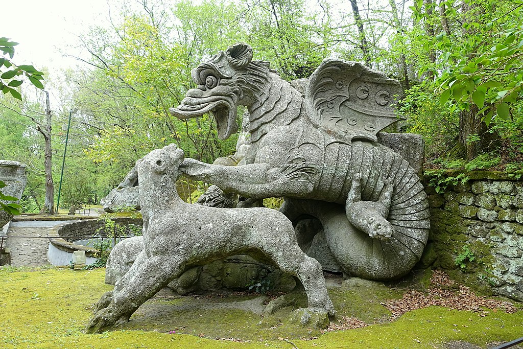 À environ une heure de route au nord de Rome, le Parco dei Mostri de Bomarzo, également connu sous le nom de Sacro Bosco, se distingue par son atmosphère unique. Ce jardin du XVIe siècle est célèbre pour ses sculptures monumentales et ses symboles énigmatiques, offrant un parcours fascinant à travers des figures mythologiques et des créatures fantastiques.
