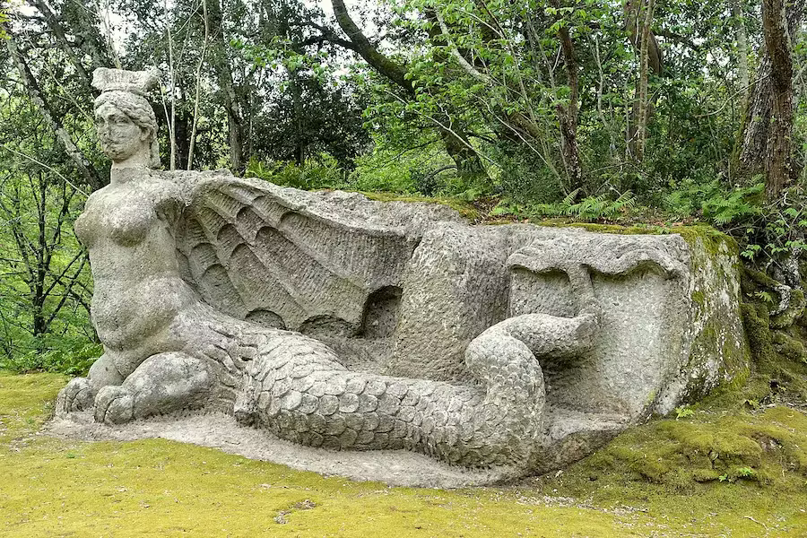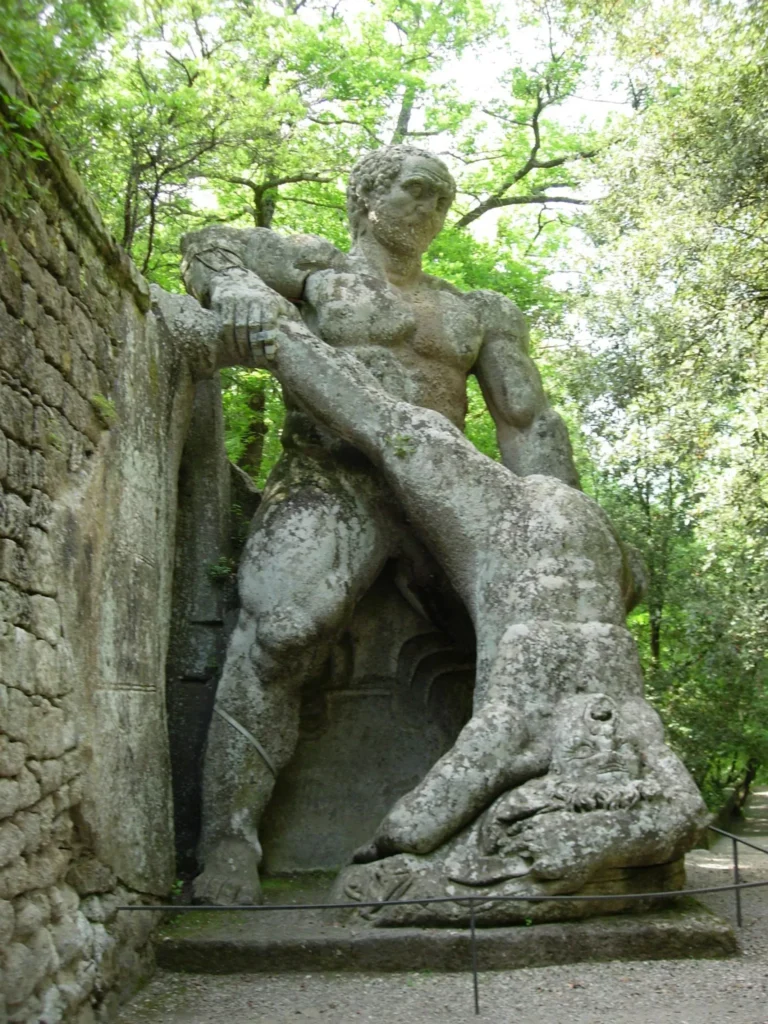 Ce jardin, loin des canons classiques de la Renaissance, se distingue par ses sculptures monumentales et son agencement déconcertant.