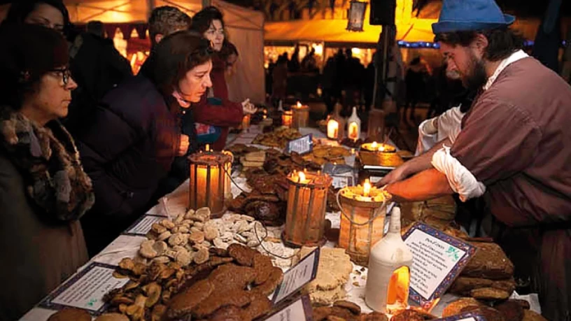 Artisans en costume d’époque, jongleurs, troubadours, cracheurs de feu et chevaliers en armure animent la ville.