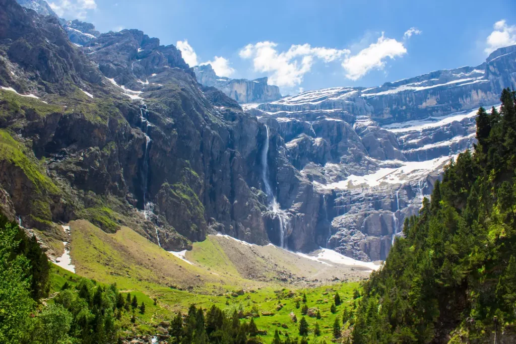 Avec ses falaises vertigineuses atteignant près de 1 500 mètres de hauteur, le site offre une dimension presque irréelle. La grande cascade, alimentée par les neiges espagnoles, complète ce décor spectaculaire, faisant du cirque de Gavarnie un chef-d’œuvre de la nature.