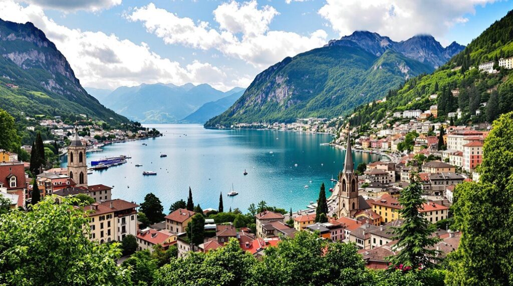 Située à la pointe de la péninsule séparant les deux bras méridionaux du lac, cette localité offre un panorama spectaculaire.