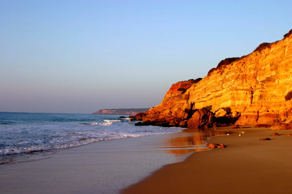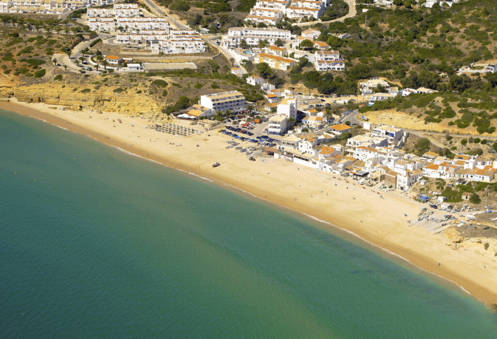 La plage de Salema s’étend sur près d’un kilomètre de sable fin et doré, offrant un contraste saisissant avec les falaises rocheuses qui l’entourent.