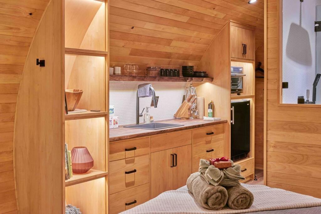 À l’intérieur de la Spyglass Treehouse, chaque détail est pensé pour offrir un confort absolu. Le lit king-size invite à des nuits paisibles, tandis que la salle de bain privative et la cuisine équipée ajoutent une touche de praticité.