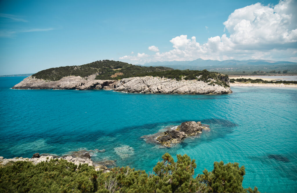 Élue meilleure destination balnéaire d’Europe aux World Travel Awards 2025, elle offre un cadre idyllique avec ses plages de la mer Ionienne, ses collines d’oliviers et ses criques aux eaux turquoise.